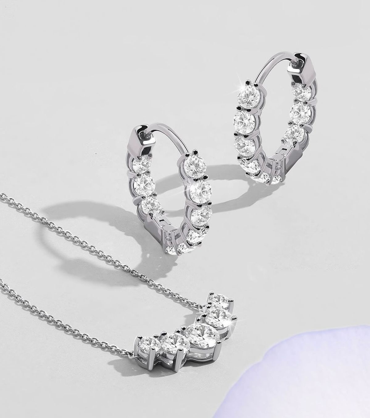 نیم ست نقره زنانه ریسه ای نگین برلیان