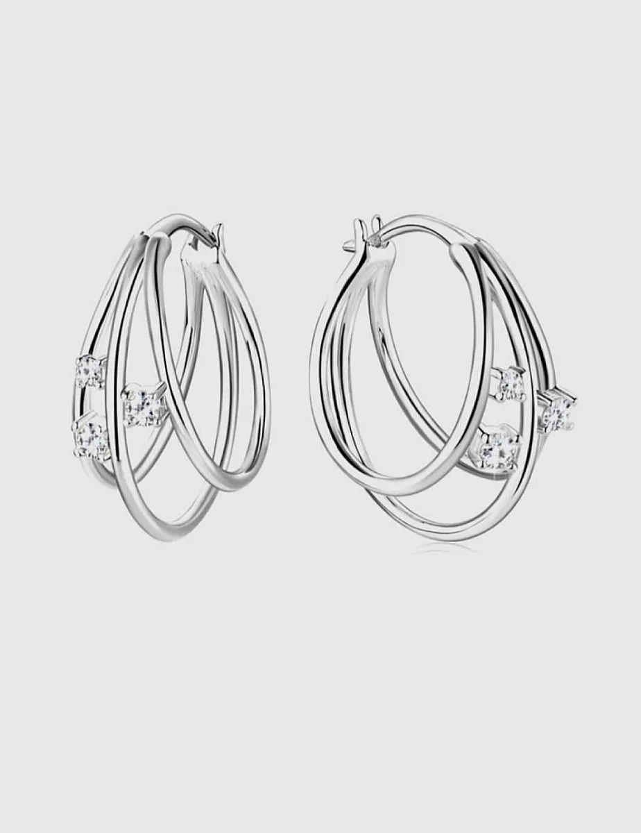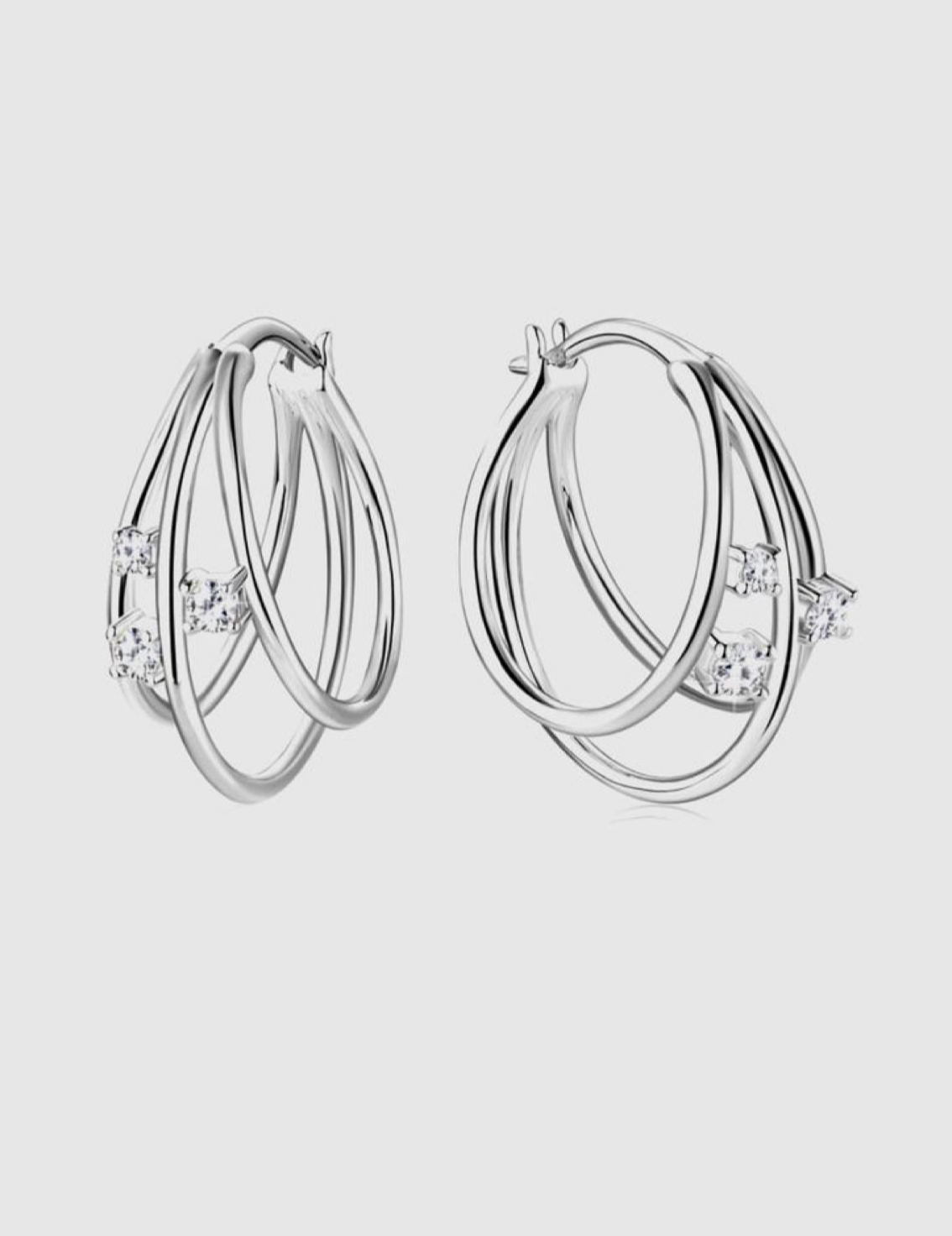 گوشواره نقره زنانه طرح سه حلقه ای سه تایی